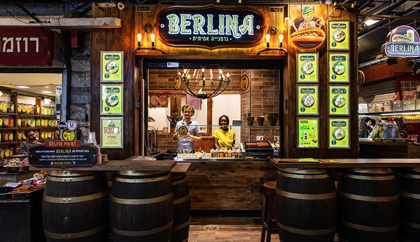 ||| ברלינה /// Berlina Israel דוכן נקניקיות איכותי וכשר בשוק מחנה יהודה.. עוצב כך על מנת שיתן אווירה של טברנה גרמנית! /// בתי עסק » ברלינה